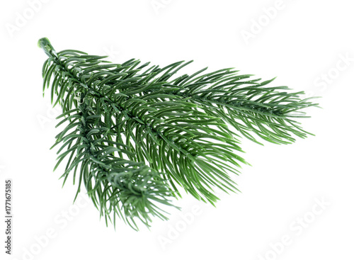 Branch of artificial fir tree isolated on white. Christmas decor
