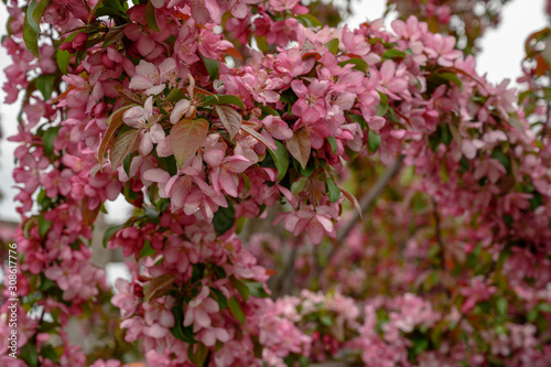Branches of Crabapple Tree with Pink Blossoms
