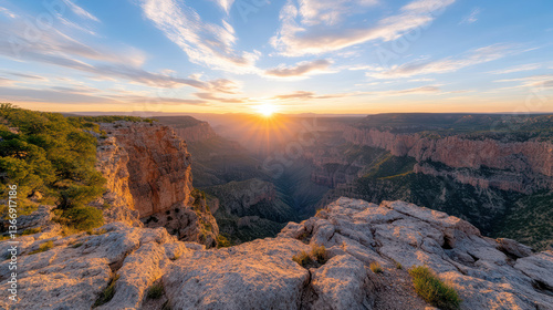 Breathtaking view of Grand Canyon sunrise, showcasing stunning rock formations and vibrant