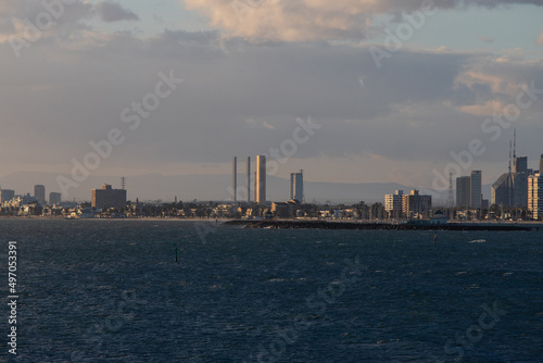 melbourne, urban, skyline, coast, blue, modern, building, travel, water, architecture, sky, city landscape, city, australia