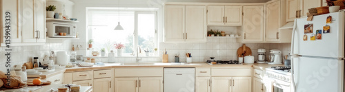 kitchen, cabinet, appliance, sunlight, window, cream, wood, countertop, white, bright, airy, minimalist, clean, warm, inviting, cooking, home, interior, decor, style, room, house, space, modern, vintage, rustic, calm, peaceful, serene, cosy, cheerful, happy, pleasant, relaxed, comfortable, domestic, family, meal, food, breakfast, lunch, dinner