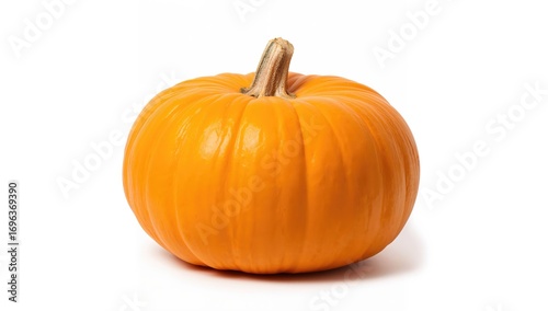 Bright orange pumpkin on a plain white surface