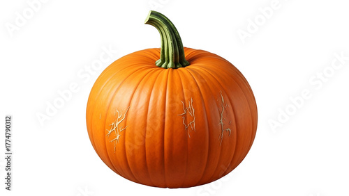 Bright Orange Pumpkin with Green Stem on Transparent Background for Autumn Fall Harvest Decoration