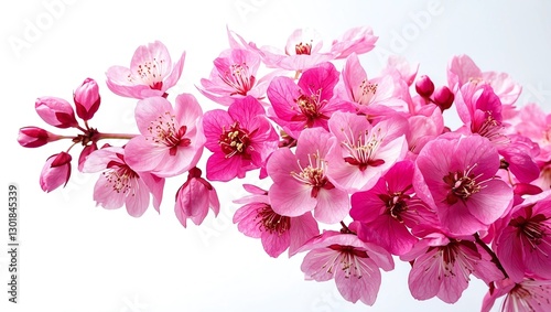 Bright pink cherry tree flowers on white isolated background close up
