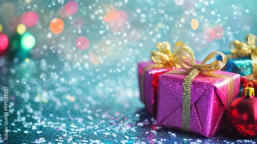 christmas, gift, box, ornament, brightly, wrapped, colourful, present, soft, colours, glow, frosted, pine, branch, pastel, light, background, tree, snow, blue, pink, yellow, banner, poster, 2025, christmas, new, year, happy, merry, holiday, winter, gold, red, festive, celebration, box, glistering, sparkle, bokeh, shiny, wrapping, decor, bright, ribbon, decoration, party, season, tree branch