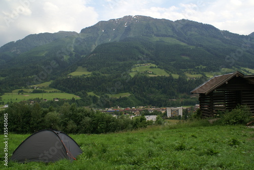 europa, alps, tent, camping, camp, nature, mountain, hike, summer, austria, landscape, travel, adventure, tour tourism, hiking, forest, grass, mountain, freedom, pathfinder, campfire, green, leisure, sky, outdoors, blue, campground, trekking, equipment, village, vale, park