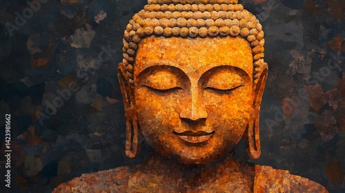 Buddha's Peaceful Digital Mosaic in Warm Golden Tones
