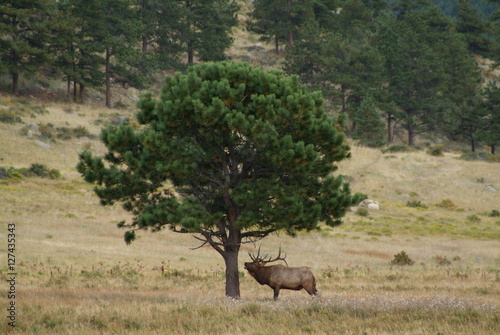 animal, tree, nature, elk, west, mountain