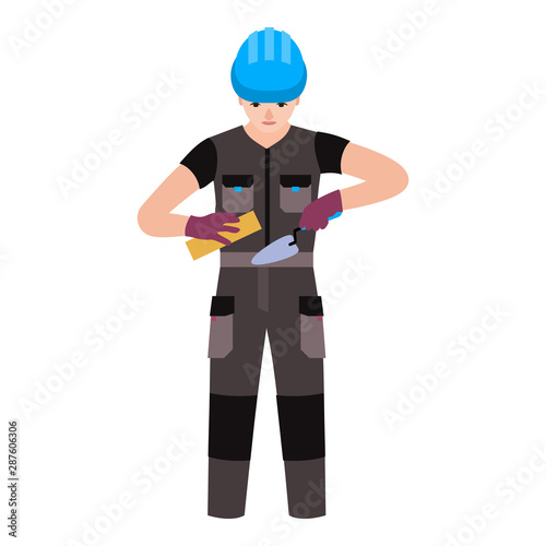 Builder man icon. Flat illustration of builder man vector icon for web design