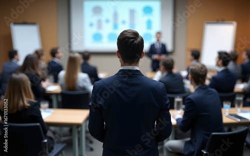 Business Conference with Focused Speaker - A business conference where the speaker is in focus and the audience is blurred. High quality