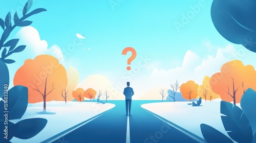 Business person looking at road with question mark sign concept illustration , no logos, no brands