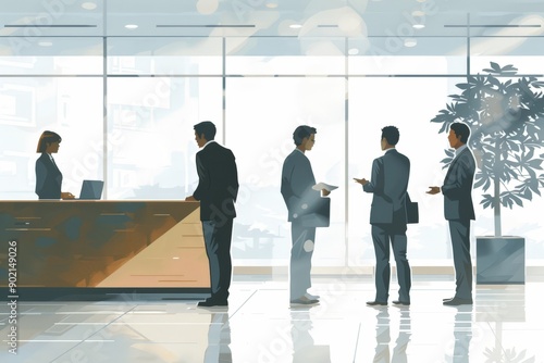 Business Professionals in Modern Office Lobby