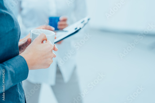 beautiful, beverage, break, businessperson, businesswoman, businesswoman, businesswoman, hot drink, coffee break, copy space, cup, drink, empty, executive, female, hand, holding, hot drink, human resources, manager, mug, office, office worker, paperwork, pen, pointing, report, selective focus, shirt, white-collar, woman, working, writing, young