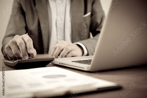 Businessman analyzing investment charts with laptop. Accounting