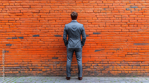 businessman in a suit stands confidently with his back to the camera, embodying professionalism and resolve in a corporate setting