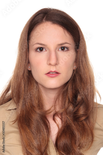 businesswoman, expression, woman, caucasian, person, people, female, isolated on white, white background, studio shot, well-dressed, pretty, long hair, adult, 20s
