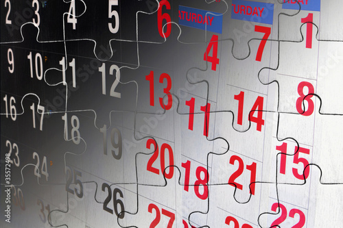 calendar, page, date, jigsaw puzzle, piece, solving, solution, game, join, assemble, link, linkage, connect, connection, connectivity, day, month, week, year, number, plan, planner, organise, agenda, schedule, reminder, deadline, appointment, object, studio shot, still life