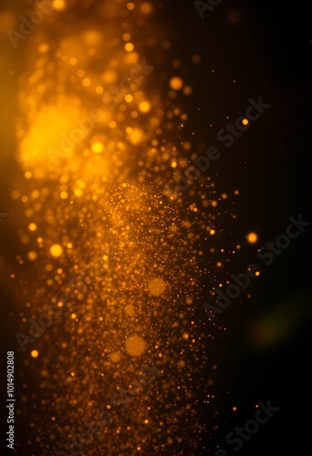 Calming Scene of Floating Golden Dust in Air, Soft Glow Against Dark Background