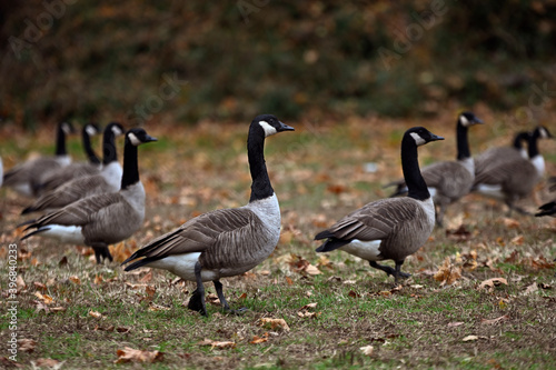 Canadian geese on a field