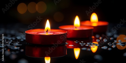 Candlelit Serenity: Three illuminated red candles cast a warm, flickering glow against a dark backdrop, evoking feelings of peace and contemplation.