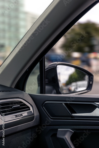 car, mirror, interior, dashboard, urban, city, window, modern, plastic, chrome, detail, driving, transportation, road, no people, automotive, backview, vehicle, travel, comfort, daylight, blurred, texture, black, closeup, architecture, mobility, half face, windscreen, urban life, journey, design, auto, technology, style, direction, minimal, driver, outdoors, perspective, smooth, shape, elegant, visual