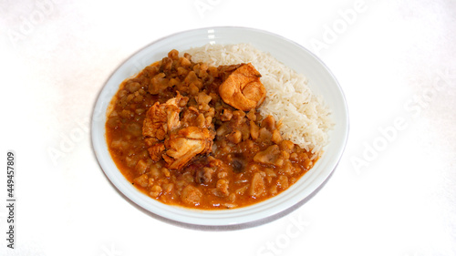 Carapulcra de Pollo, Peruvian food based on dried potatoes, pork or chicken, spices such as ají panca, onion, garlic, pepper, cumin.