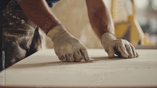 Carpenter installing drywall in a modern office space. Featuring drywall installation