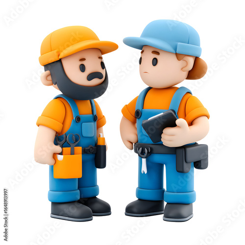 construction, men at work, cartoon, character, three-dimensional, rendering, handyman, repair, builder, uniform, overall, safety, equipment, tool, plastic, figure, illustration, isolated, background, cute, funny, playful, profession, job, work, maintenance, service, industry, occupation, builder, repairman, constructor, manual, labor, professional, craftsman, person, man, male, men at work, skilled, trade, employment, career