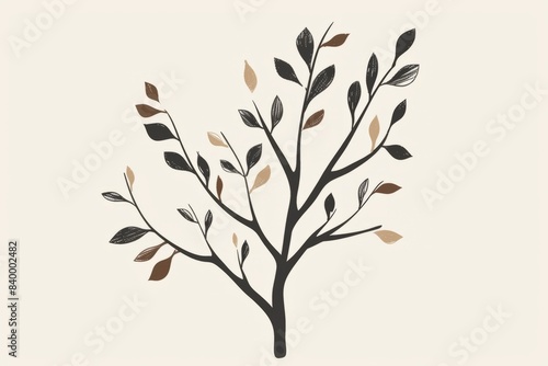 Cartoon cute doodles of a minimalist tree with simple branches and leaves, Generative AI