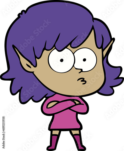 elf, girl, woman, female, surprised, staring, cartoon, drawing, illustration, retro, doodle, freehand, free, hand, drawn, quirky, art, artwork, funny, character