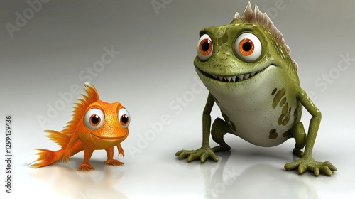 cartoon, fish, frog, character, digital, illustration, children, animation, book, cover, friendly, cute, animal, graphic, design, children, children, funny, imaginative, creative, animated, smiling, adorable, three-dimensional, art, drawing, colours, image, modern, concept