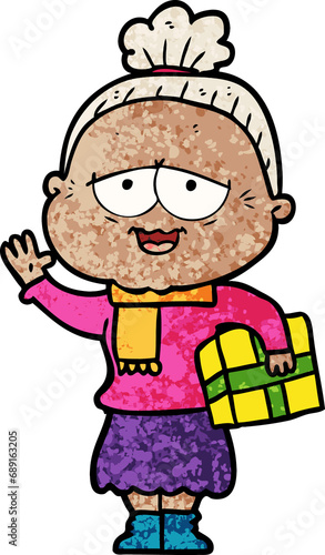 cartoon happy old lady