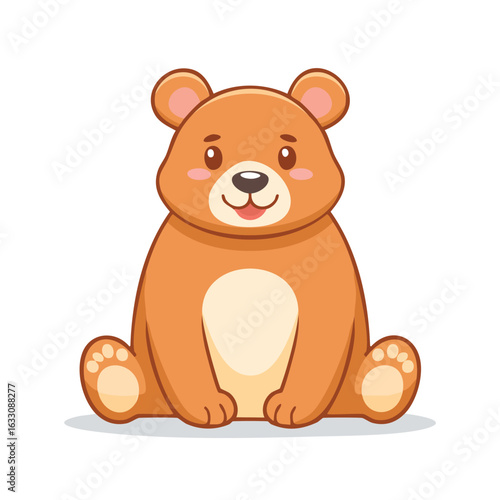 bear, cartoon, animal, mammal, cute, brown, light, illustration, drawing, graphic, design, vector, art, happy, smiling, face, rose colored, cheek, sitting, paw, belly, fur, wildlife, nature, character, mascot, cheerful, adorable, friendly, playful, isolated, background, white, simple, clean, digital, artwork, artistic, funny, sweet, soft, fluffy, round, ear, nose, mouth, eye, outline, shadow