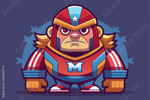 Cartoon Superhero with American Flag Colors and "M" Symbol