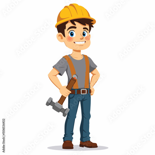 Cartoon Young Engineer with Tool Belt and Helmet – Construction Worker Concept