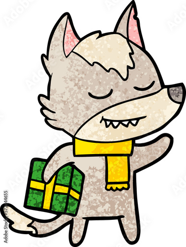 friendly, animal, wolf, wild, cute, cartoon, drawing, illustration, retro, doodle, freehand, free, hand, drawn, quirky, art, artwork, funny, character, christmas, christmas, present