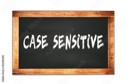 CASE SENSITIVE text written on wooden frame school blackboard.