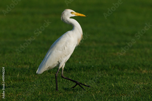Cattle Egret on green grass field