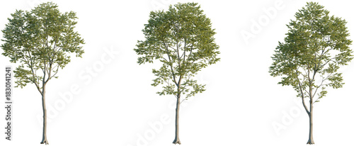 Celtis australis tree, front view, cutout, 8k png, transparent background, isolate, Three realistic trees with transparent backgrounds for your next project