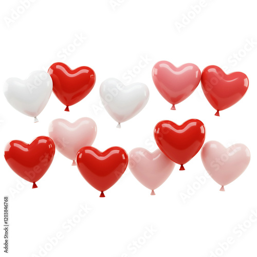Charming 3D Heart-Shaped Balloons in Red, Pink, and White - Perfect for Valentine's Day Designs