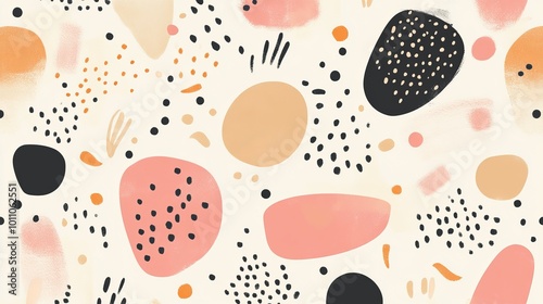Charming doodle pattern background featuring abstract shapes and dots in a modern vector design, ideal for banners, flyers, and cover art, perfect for creative projects and trendy graphic designs