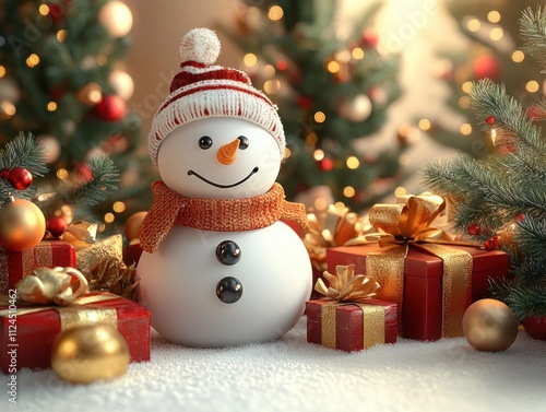 Cheerful Snowman Christmas Template with Decorated Pine Trees and Colorful Presents