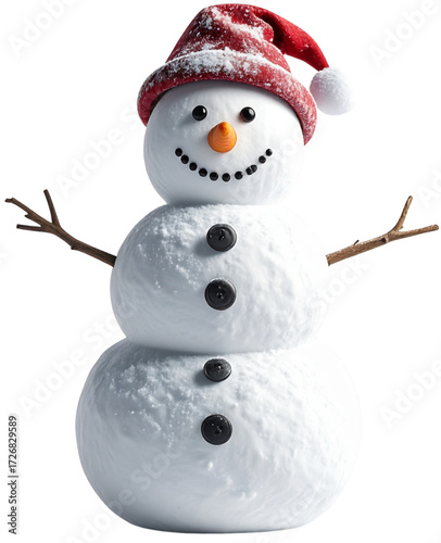 Cheerful Snowman with Red Hat