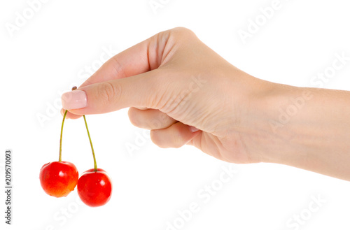 Cherries in hand on a white background isolation