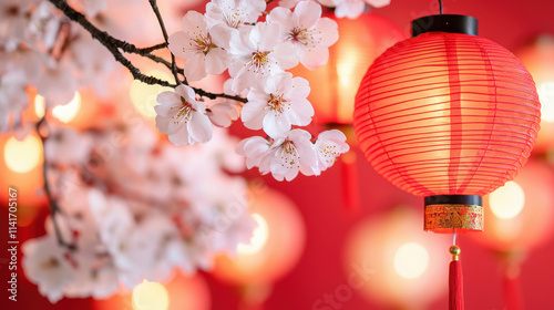 chinese new year, background, blank, cherry, blossom, lantern, red, festive, glowing, soft, radiant, floral, tree branch, celebration, asian, culture, spring, bloom, light, traditional, decoration, nature, beauty, delicate, flower petals, tree, festival, bright, cheerful, ornamental, hanging, chinese, japanese, pink, white, bokeh, closeup, serene, peaceful, elegant, harmony, joyful, seasonal, atmosphere, warm, inviting, high-coloured