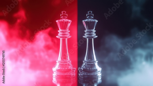 chess, strategy, contrasting, red, blue, game, board, piece, pawn, king, queen, competition, opponent, intelligence, decision, move, defeat, plan, tactic, battle, thinking, mind, cerebral, contrast, light, visual, symbol, metaphor, abstract, idea, duality, power, leadership, strength, challenge, sharpened, concentration