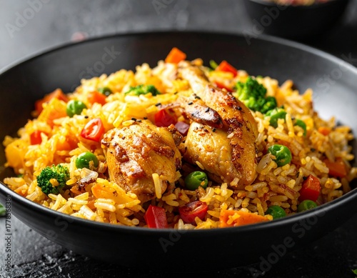 chicken, rice, vegetable, bowl, food, helping, share, presentation, dinner, balanced, flavorful, carrot, nourishment, nutriment, mineral, vitamin, alimentation, broccoli, grain, alimentary, carbohydrate, poultry, fair, herb, serving, wholesome, greener, paprika, grain, pea, protein, refreshment, aliment, turmeric, orange, red, tomatoes, savoury, seasoned, healthy, spice, dark, gastronomy, allotment, aromatic, portion, pepper, yellow, receipe