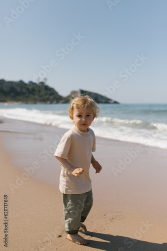 Child looking at camera in front of the sea