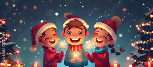 children, sparkler, christmas tree, festive, holiday, celebration, sibling, youth, festivity, decoration, joy, seasonal, togetherness, merriment, cheerful, festive, sparkling, christmas, ornament, excitement, childhood, winter, cosy, symbolic, tradition, illumination, glowing, jovial, family, happiness, youthful, annual, festivity, jolly, season, decorative, merry, christmas spirit, holiday season, cheer, santa, celebratory, seasons greetings, joyful, festive attire