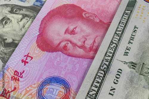 Chinese Yuan and US Dollar Banknotes. Cash. Financial Concept.